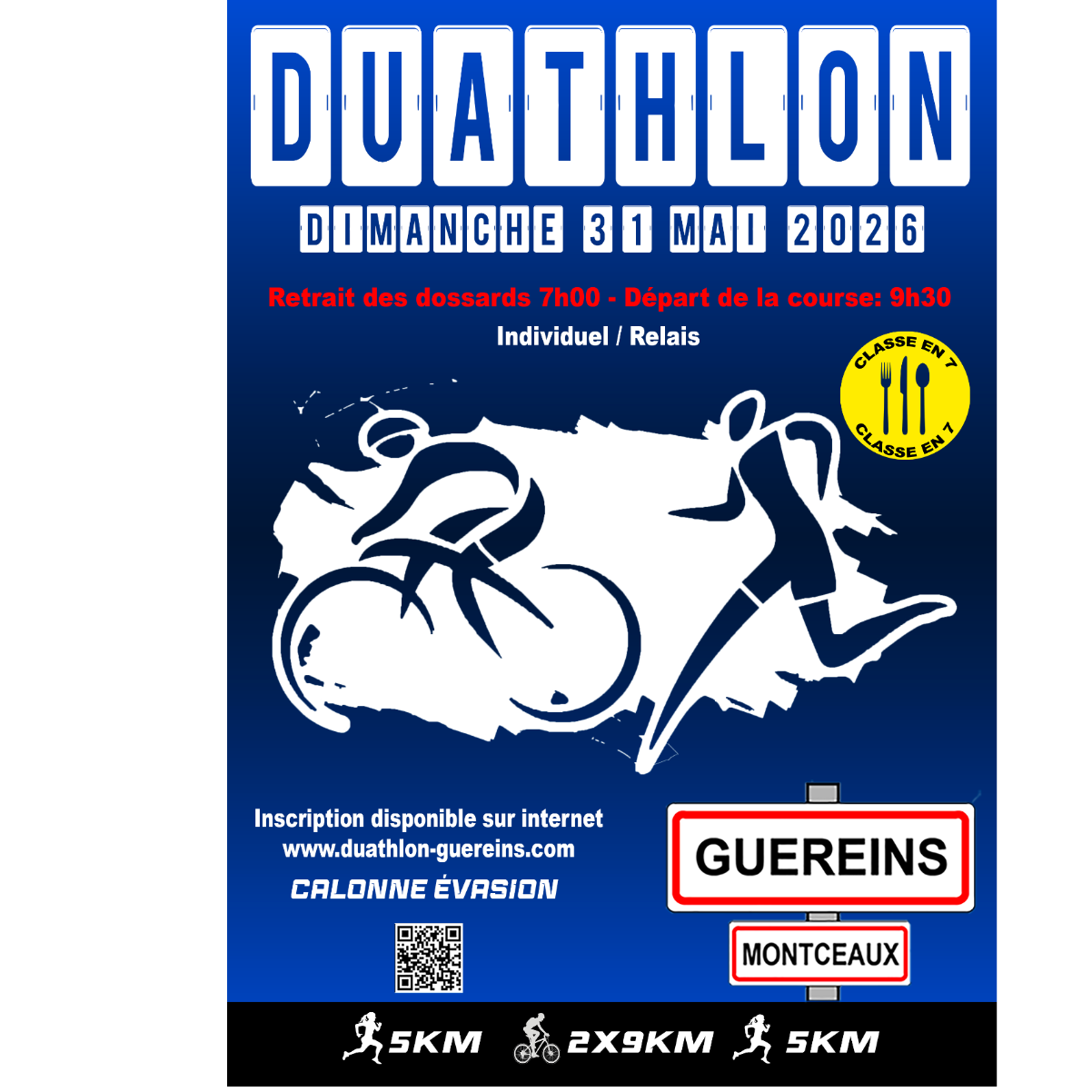 Inscription disponible sur internet : www.duathlon-guereins.com